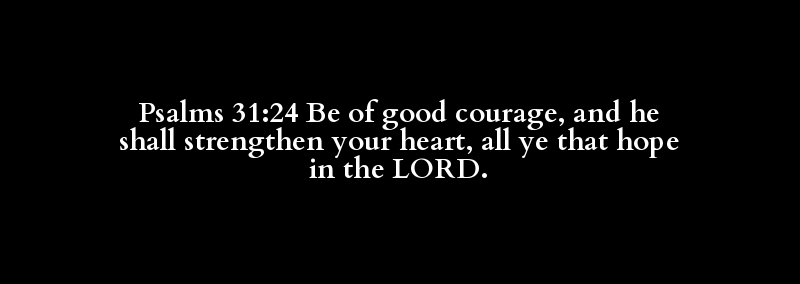 Psalms 31:24 Be of good courage, and he shall strengthen your heart, all ye that hope in the LORD.