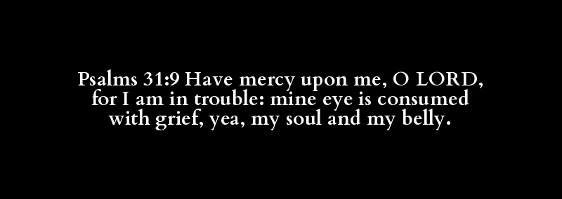 Psalms 31:9 Have mercy upon me, O LORD, for I am in trouble: mine eye is consumed with grief, yea, my soul and my belly.