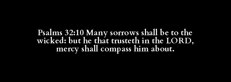 Psalms 32:10 Many sorrows shall be to the wicked: but he that trusteth in the LORD, mercy shall compass him about.