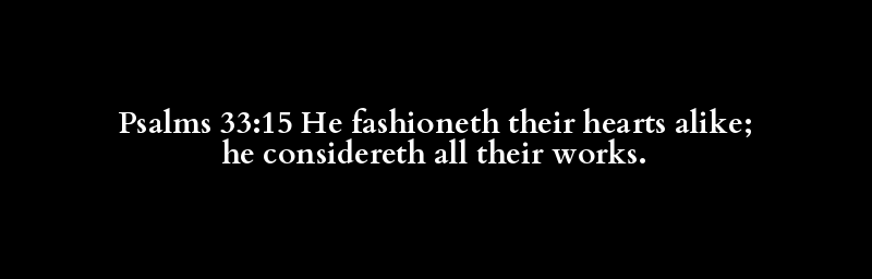 Psalms 33:15 He fashioneth their hearts alike; he considereth all their works.