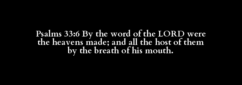 Psalms 33:6 By the word of the LORD were the heavens made; and all the host of them by the breath of his mouth.