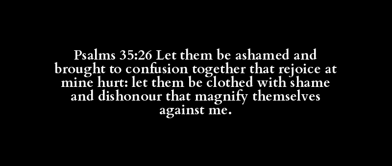 Psalms 35:26 Let them be ashamed and brought to confusion together that rejoice at mine hurt: let them be clothed with shame and dishonour that magnify themselves against me.