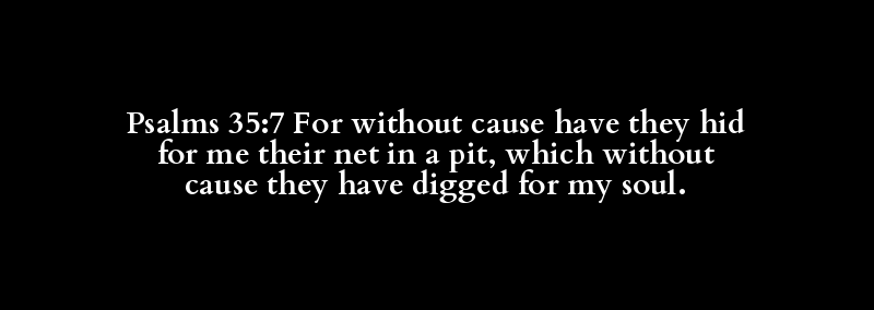 Psalms 35:7 For without cause have they hid for me their net in a pit, which without cause they have digged for my soul.
