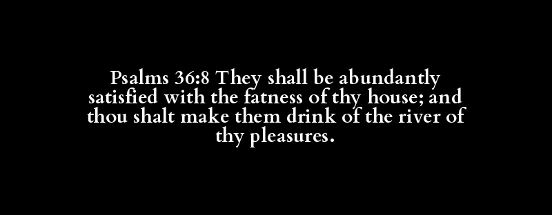 Psalms 36:8 They shall be abundantly satisfied with the fatness of thy house; and thou shalt make them drink of the river of thy pleasures.