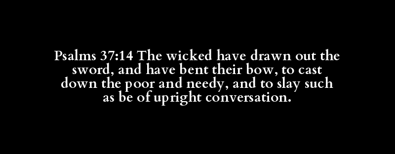 Psalms 37:14 The wicked have drawn out the sword, and have bent their bow, to cast down the poor and needy, and to slay such as be of upright conversation.