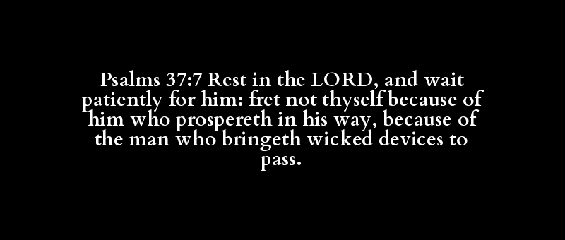 Psalms 37:7 Rest in the LORD, and wait patiently for him: fret not thyself because of him who prospereth in his way, because of the man who bringeth wicked devices to pass.