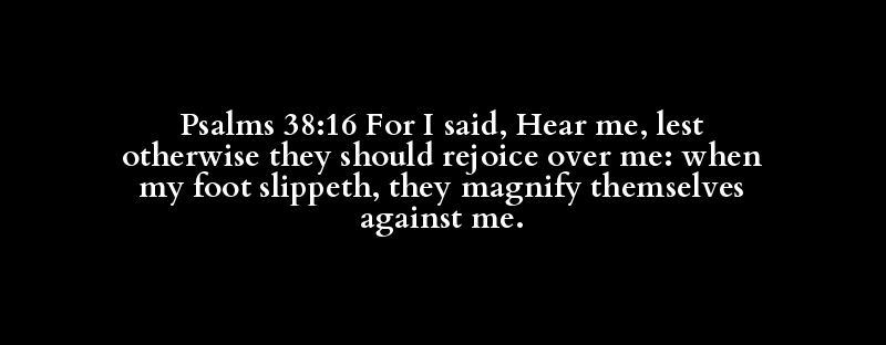 Psalms 38:16 For I said, Hear me, lest otherwise they should rejoice over me: when my foot slippeth, they magnify themselves against me.