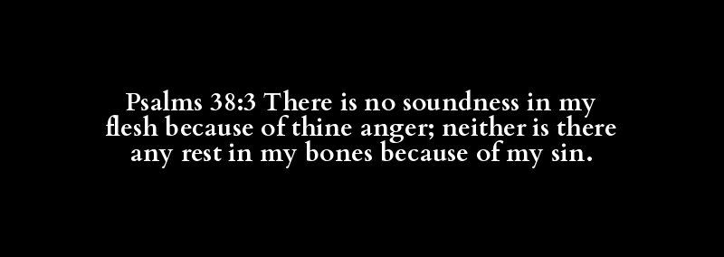 Psalms 38:3 There is no soundness in my flesh because of thine anger; neither is there any rest in my bones because of my sin.