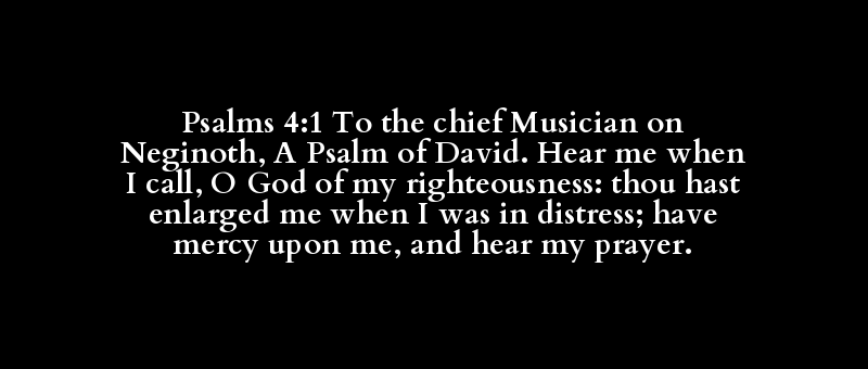 Psalms 4:1 To the chief Musician on Neginoth, A Psalm of David. Hear me when I call, O God of my righteousness: thou hast enlarged me when I was in distress; have mercy upon me, and hear my prayer.