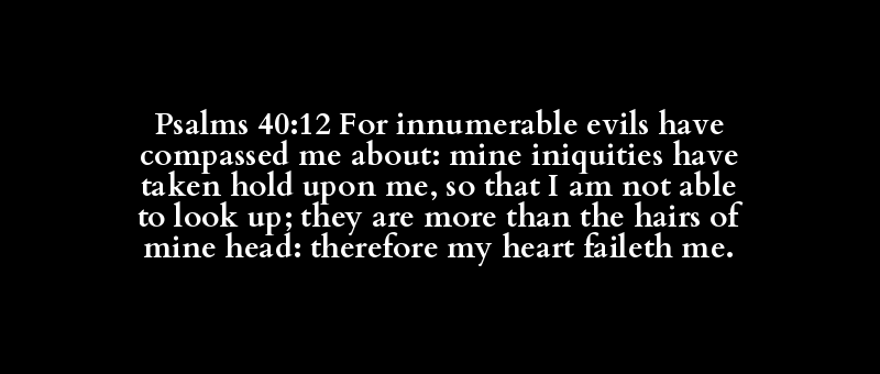 Psalms 40:12 For innumerable evils have compassed me about: mine iniquities have taken hold upon me, so that I am not able to look up; they are more than the hairs of mine head: therefore my heart faileth me.