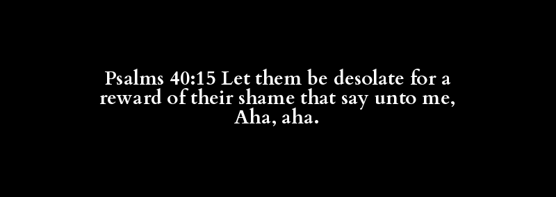 Psalms 40:15 Let them be desolate for a reward of their shame that say unto me, Aha, aha.