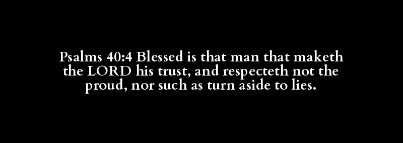 Psalms 40:4 Blessed is that man that maketh the LORD his trust, and respecteth not the proud, nor such as turn aside to lies.