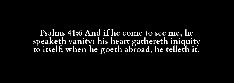 Psalms 41:6 And if he come to see me, he speaketh vanity: his heart gathereth iniquity to itself; when he goeth abroad, he telleth it.