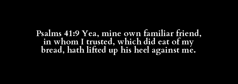 Psalms 41:9 Yea, mine own familiar friend, in whom I trusted, which did eat of my bread, hath lifted up his heel against me.