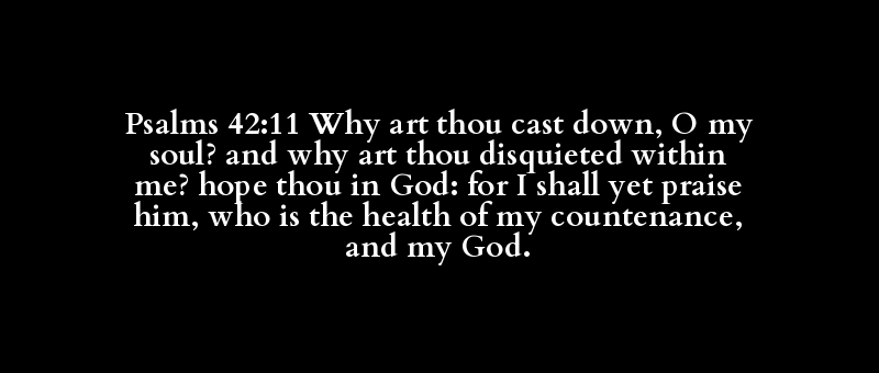 Psalms 42:11 Why art thou cast down, O my soul? and why art thou disquieted within me? hope thou in God: for I shall yet praise him, who is the health of my countenance, and my God.