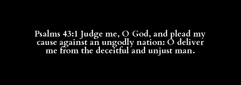 Psalms 43:1 Judge me, O God, and plead my cause against an ungodly nation: O deliver me from the deceitful and unjust man.