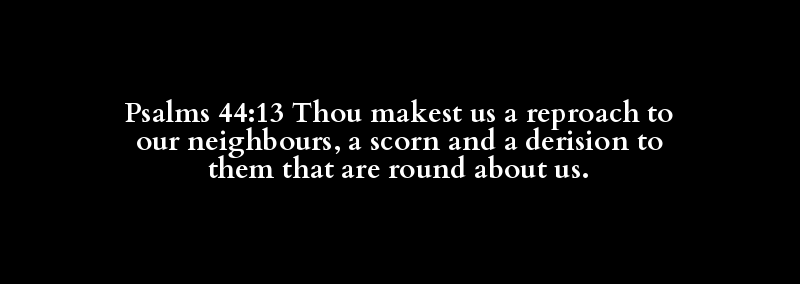Psalms 44:13 Thou makest us a reproach to our neighbours, a scorn and a derision to them that are round about us.