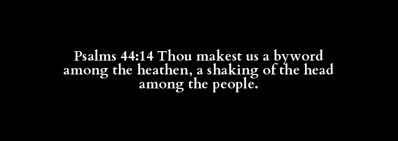 Psalms 44:14 Thou makest us a byword among the heathen, a shaking of the head among the people.