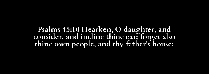 Psalms 45:10 Hearken, O daughter, and consider, and incline thine ear; forget also thine own people, and thy father's house;