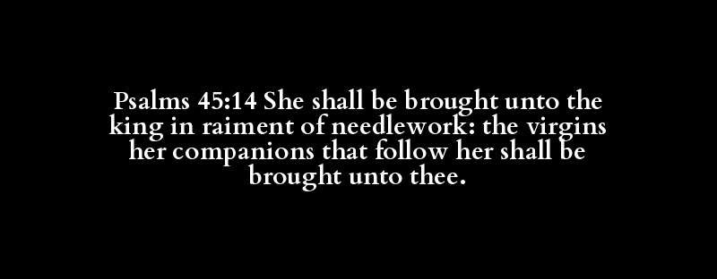 Psalms 45:14 She shall be brought unto the king in raiment of needlework: the virgins her companions that follow her shall be brought unto thee.