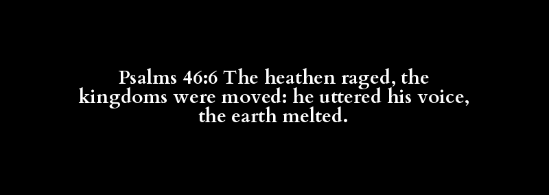 Psalms 46:6 The heathen raged, the kingdoms were moved: he uttered his voice, the earth melted.