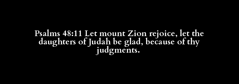 Psalms 48:11 Let mount Zion rejoice, let the daughters of Judah be glad, because of thy judgments.