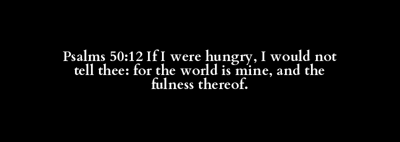 Psalms 50:12 If I were hungry, I would not tell thee: for the world is mine, and the fulness thereof.