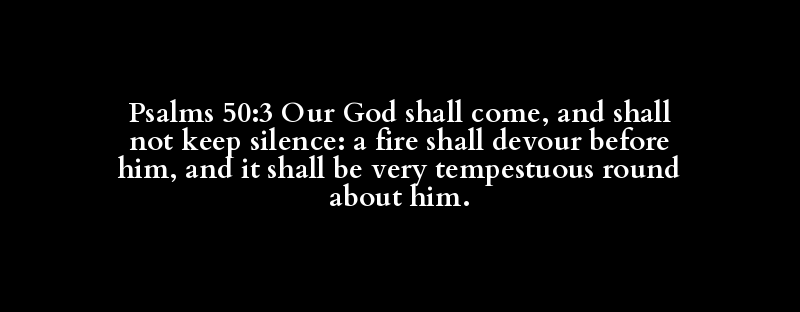 Psalms 50:3 Our God shall come, and shall not keep silence: a fire shall devour before him, and it shall be very tempestuous round about him.