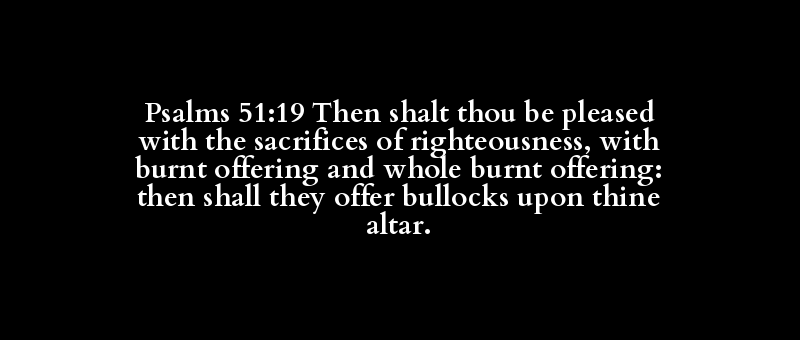 Psalms 51:19 Then shalt thou be pleased with the sacrifices of righteousness, with burnt offering and whole burnt offering: then shall they offer bullocks upon thine altar.