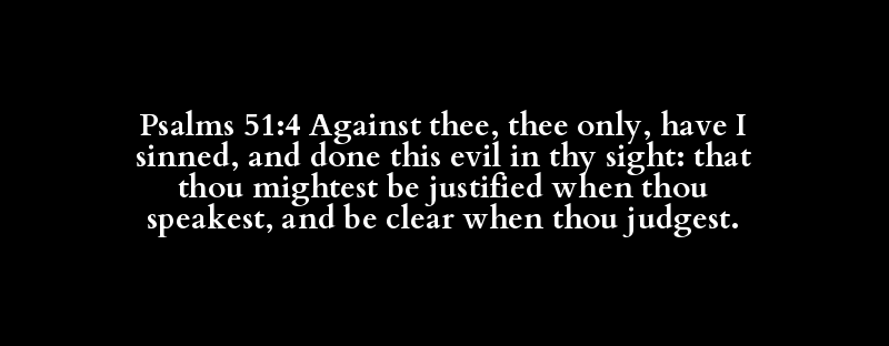 Psalms 51:4 Against thee, thee only, have I sinned, and done this evil in thy sight: that thou mightest be justified when thou speakest, and be clear when thou judgest.