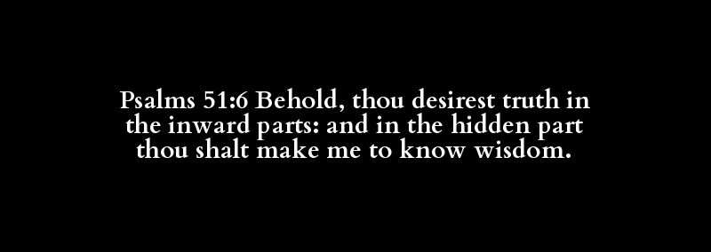Psalms 51:6 Behold, thou desirest truth in the inward parts: and in the hidden part thou shalt make me to know wisdom.