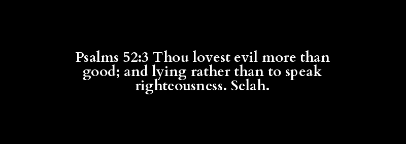 Psalms 52:3 Thou lovest evil more than good; and lying rather than to speak righteousness. Selah.