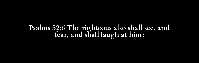 Psalms 52:6 The righteous also shall see, and fear, and shall laugh at him: