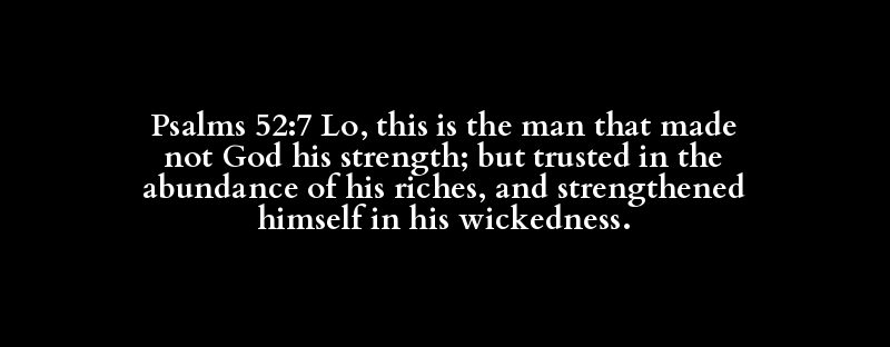 Psalms 52:7 Lo, this is the man that made not God his strength; but trusted in the abundance of his riches, and strengthened himself in his wickedness.