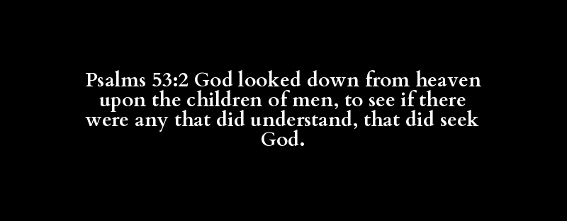 Psalms 53:2 God looked down from heaven upon the children of men, to see if there were any that did understand, that did seek God.