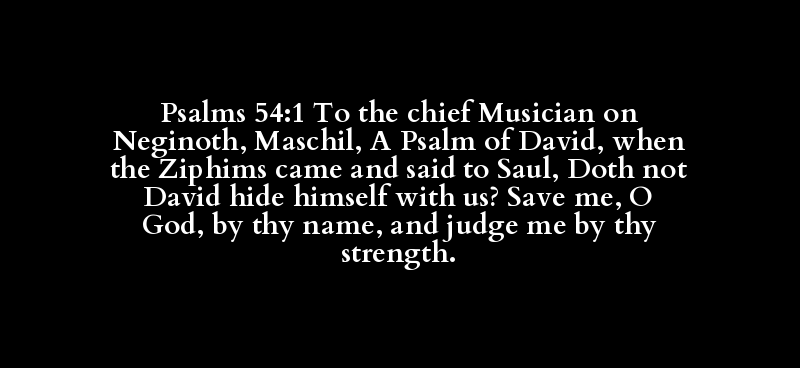 Psalms 54:1 To the chief Musician on Neginoth, Maschil, A Psalm of David, when the Ziphims came and said to Saul, Doth not David hide himself with us? Save me, O God, by thy name, and judge me by thy strength.