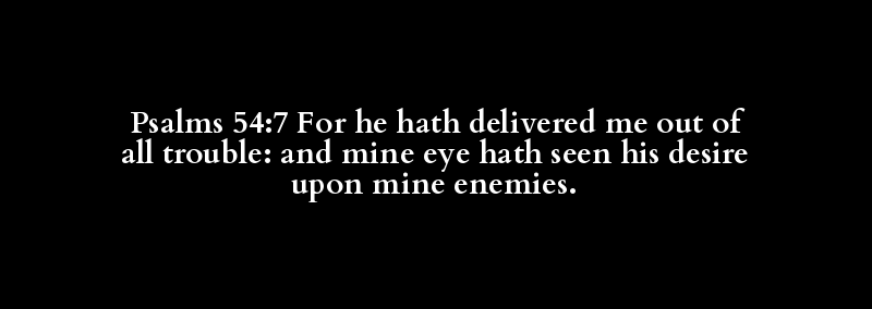 Psalms 54:7 For he hath delivered me out of all trouble: and mine eye hath seen his desire upon mine enemies.