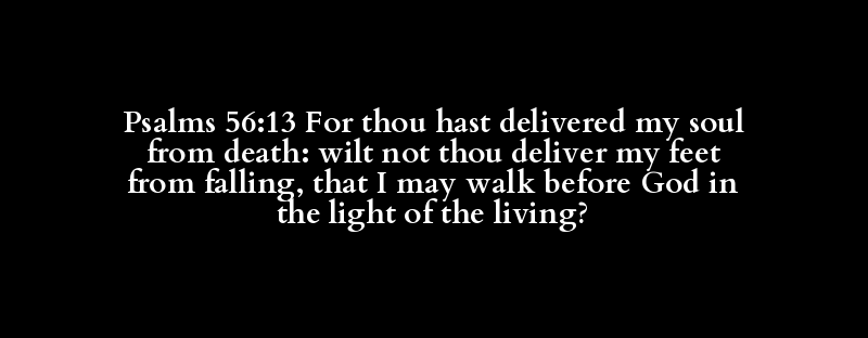Psalms 56:13 For thou hast delivered my soul from death: wilt not thou deliver my feet from falling, that I may walk before God in the light of the living?