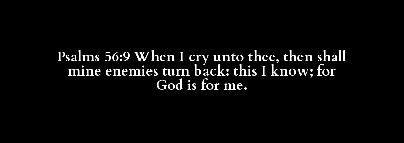 Psalms 56:9 When I cry unto thee, then shall mine enemies turn back: this I know; for God is for me.