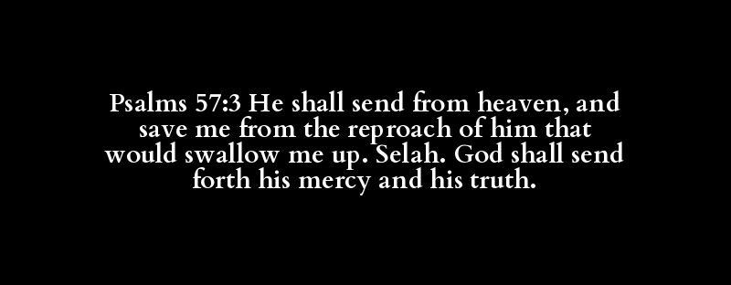Psalms 57:3 He shall send from heaven, and save me from the reproach of him that would swallow me up. Selah. God shall send forth his mercy and his truth.