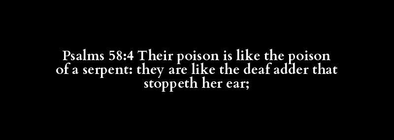 Psalms 58:4 Their poison is like the poison of a serpent: they are like the deaf adder that stoppeth her ear;