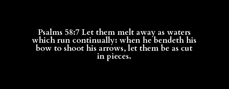 Psalms 58:7 Let them melt away as waters which run continually: when he bendeth his bow to shoot his arrows, let them be as cut in pieces.