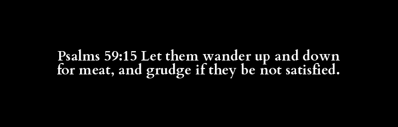 Psalms 59:15 Let them wander up and down for meat, and grudge if they be not satisfied.
