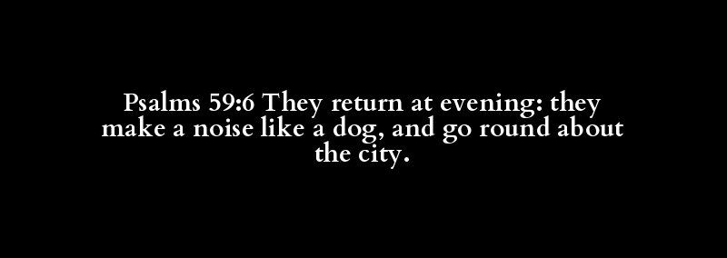 Psalms 59:6 They return at evening: they make a noise like a dog, and go round about the city.