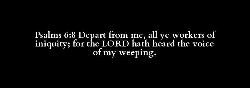 Psalms 6:8 Depart from me, all ye workers of iniquity; for the LORD hath heard the voice of my weeping.