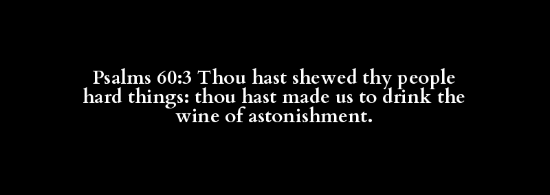 Psalms 60:3 Thou hast shewed thy people hard things: thou hast made us to drink the wine of astonishment.