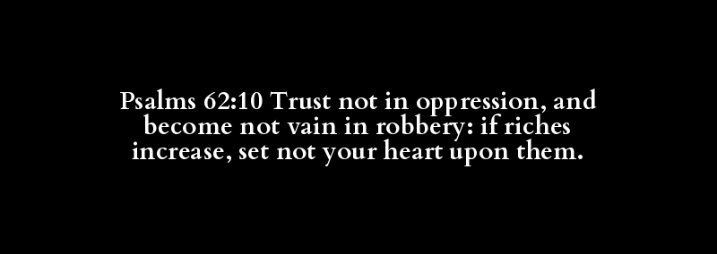 Psalms 62:10 Trust not in oppression, and become not vain in robbery: if riches increase, set not your heart upon them.