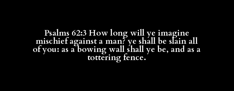 Psalms 62:3 How long will ye imagine mischief against a man? ye shall be slain all of you: as a bowing wall shall ye be, and as a tottering fence.