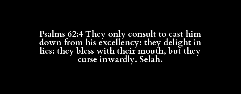 Psalms 62:4 They only consult to cast him down from his excellency: they delight in lies: they bless with their mouth, but they curse inwardly. Selah.