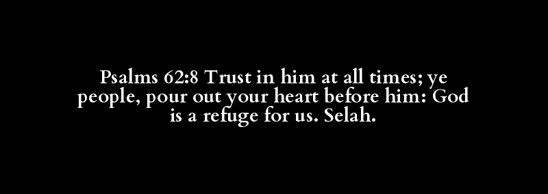 Psalms 62:8 Trust in him at all times; ye people, pour out your heart before him: God is a refuge for us. Selah.